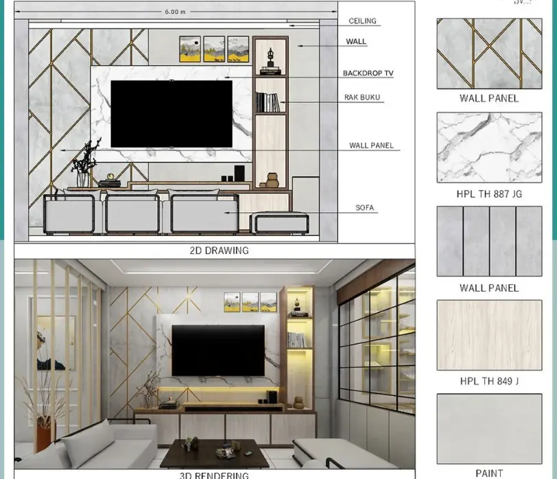 3. Material Selection – Choosing colors, furniture, lighting, and décor.